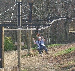 into a bucket seat with a harness, and the zip rail takes